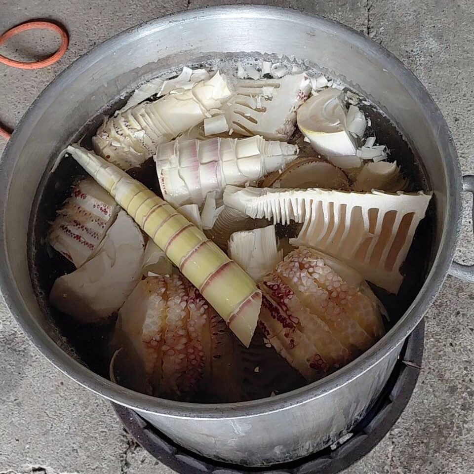 収穫後は皮をむき、大型寸胴鍋でコトコト茹でて下処理もばっちり👌